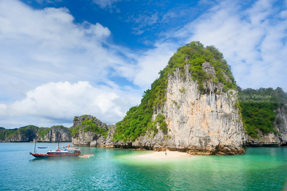 The beach and island of Ba Trai Dao ( Three of Apricot fruits) is located near Cat Ba Island, more than 20 km southeast of the Bai Chay City & port. It’s renowned for the wild natural beauty and poetic, charming landscape. Ba Trai Dao is a white sandy beach, embracing three mountains shaped like 3 peaches.