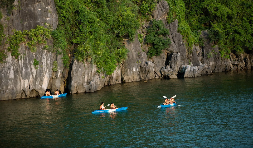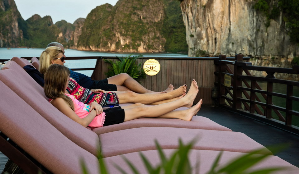 • Passengers can take steps to reach on the top of Ti Top beach to have a panorama view of Halong Bay.