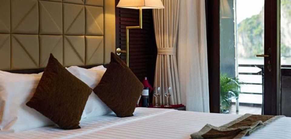 All Glory Legend Crusie deluxe cabins are especially designed with big windows overlooked the sea, you can see the beautiful panoramic view of Halong Bay, even from your bed.. Email: glorylegendcruise@impresstravel.com or contact the hotline (Whatsapp, Zalo, Viber, Skype) at +84.912 379 189 – Mr. Alex.