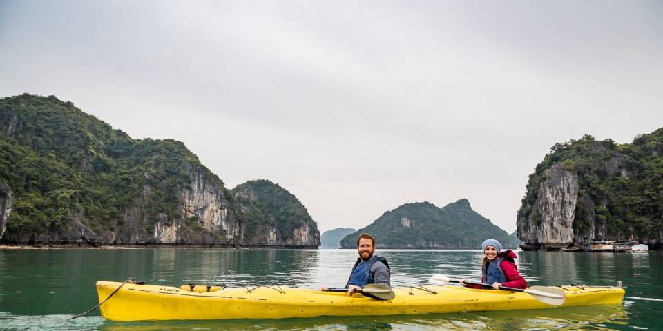 • 13:00 – 15:30 Savor a delectable lunch as Oriental Sails cruises further along the limestone islands of Bai Tu Long Bay, heading to Vung Vieng fishing village – one of the largest fishing villages in Halong Bay to see the life of local fishermen.