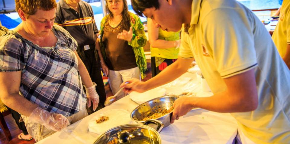 • 17:30 – 18:00 Return to Oriental Sails and have bath then relax as the sun starts to set.  Enjoy the Happy Hour at the bar and on the sun deck while cooking demonstration is organizing.