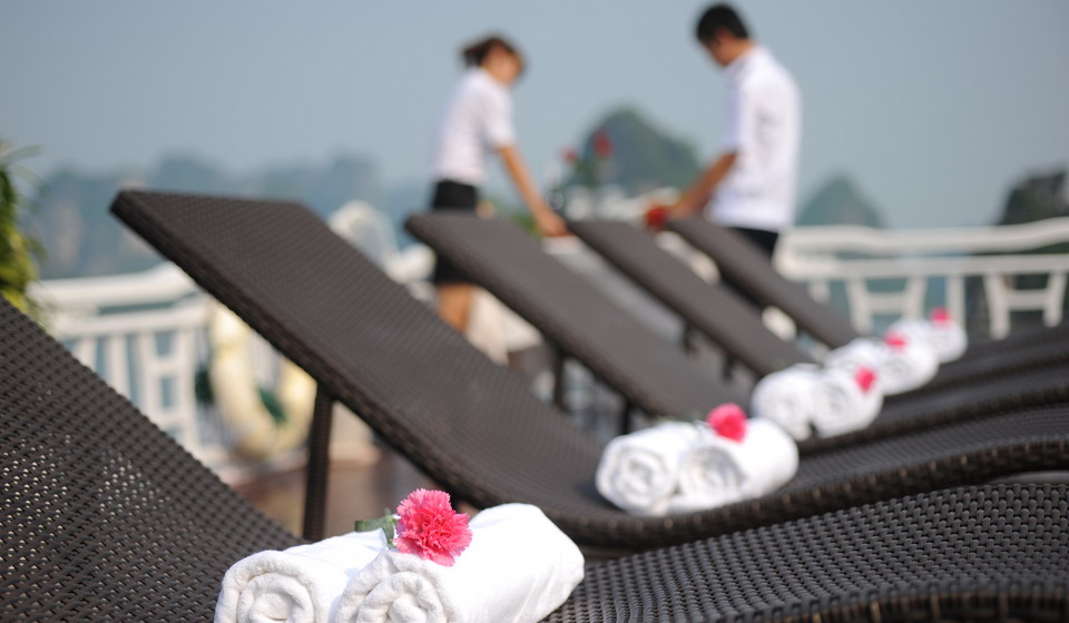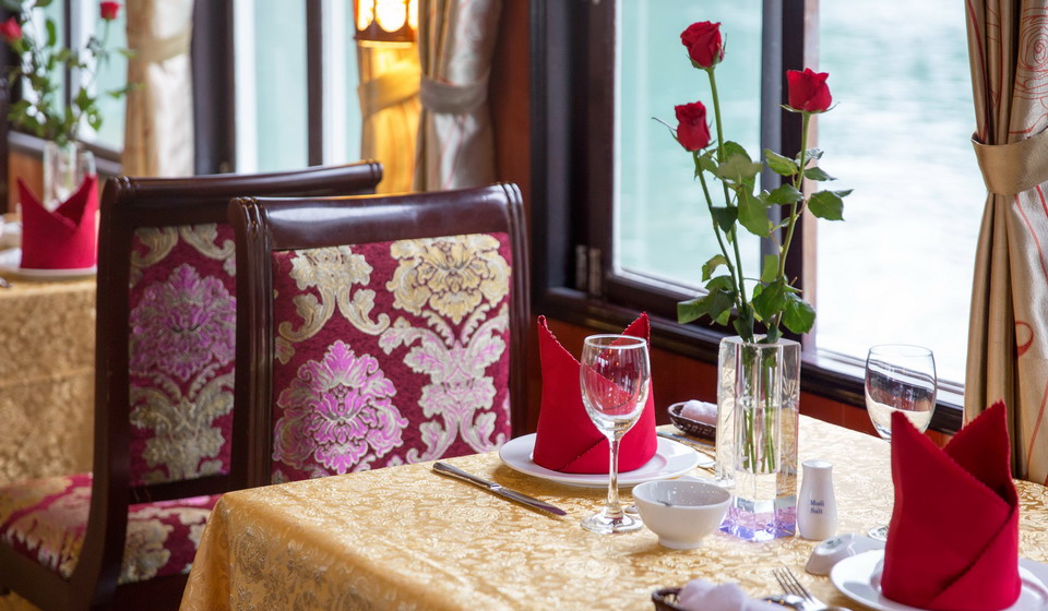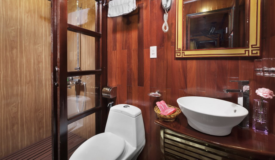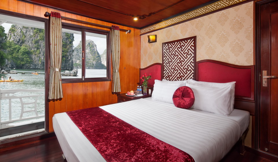 These cabins are designed to see Lan Ha Bay through the large window even when you are lying in the bed or sitting at comfy chair at your balcony. These beautiful points of cabins are fit in the large cabins size with 16 square meters. Email:rosacruise@impresstravel.com & call to Mr. Alex Impress Travel, Halong Tours, Halong Bay Cruises & Gray Line Cruise Manager at his cell-phone (+84) 9123 79 189