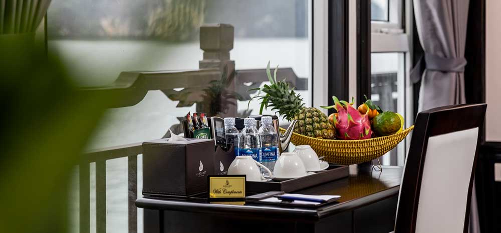 • 13: 00 Enjoy a buffet lunch at our restaurant while the cruise goes ahead to Halong Bay