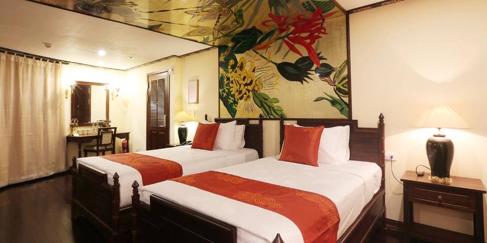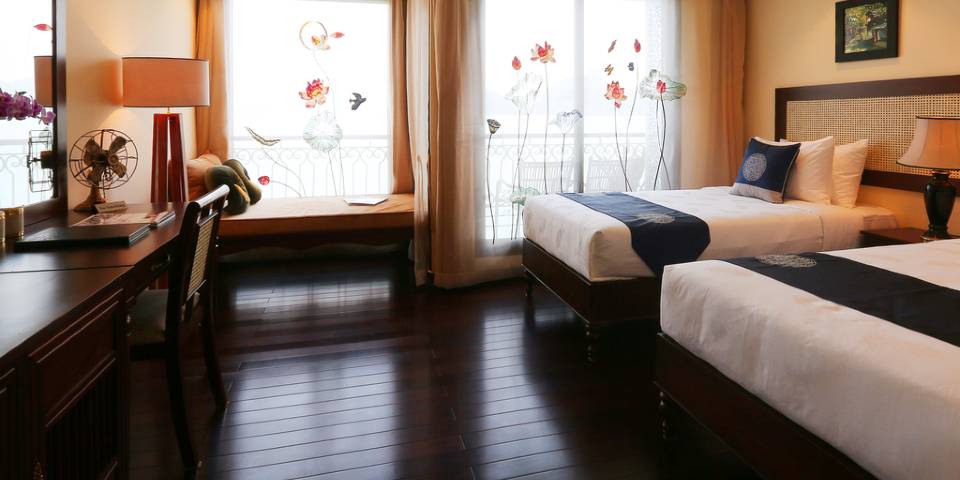 Indochine Cruise's cabins & suites – The calm and refined elegance finds a home in our cabins & suites of Indochine Cruise in Lan Ha Bay. This 32m2, 42m2, 54m2, 80m2, spaces & generous cabins and suites have a wide double bed or two single beds or connecting rooms at their center, framed by quaint wooden furnishings and fabulous wall décor evoking the colonial period of Vietnam. Here you are the executive suites & cabins such as Junior Suite Cabin, Suite Cabin, Executive Suite Cabin, President Suite Cabin, and Family Triple Cabin.22.00