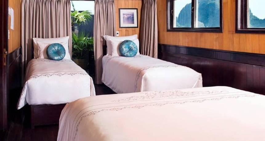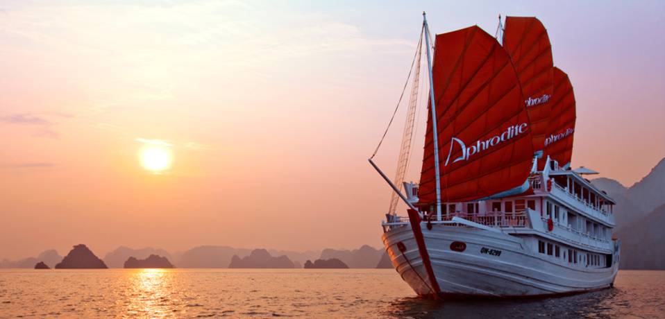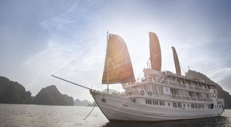 Give yourself the pampering you deserve, with a luxury cruise on the open waters of Halong Bay. Get away in style and comfort as you take in the fresh sea air or sip cocktails on a secluded beach. On-board, enjoy our spacious cabins and impeccable service. Take advantage of Happy Hour, our extensive drinks list, the fine dining restaurant, and social options such as board games and movie night. Inclusion :Sun block, Camera + Film, Insect repellent, Original Passport, Hat, Swimming suite, Sun glasses. Email:aphroditecruise@impresstravel.com & call to Mr. Alex Impress Travel, Halong Tours, Halong Bay Cruises & Gray Line Cruise Manager at his cell-phone (+84) 9123 79 189