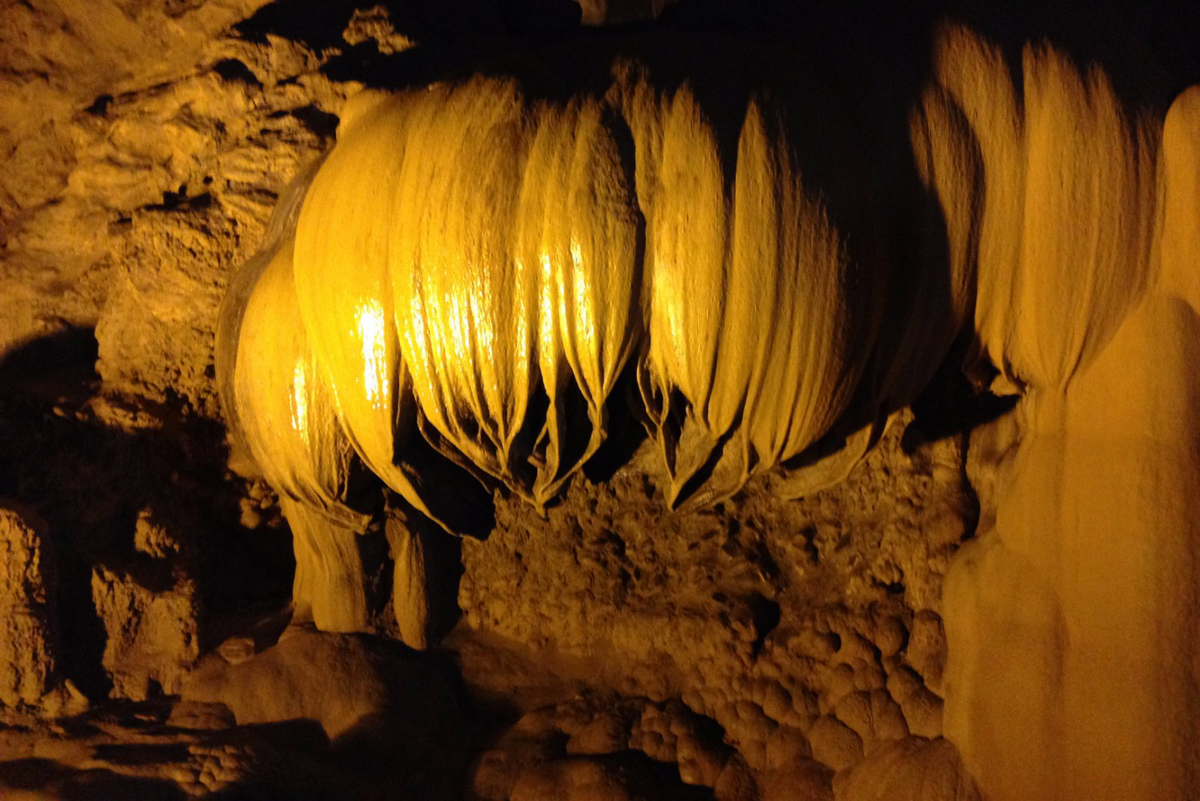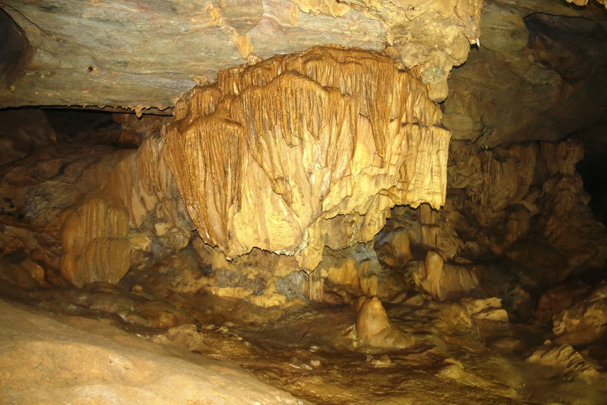 The colors of the stalactites and stalagmites in Nguom Ngao Cave are quite different from those of other caves because the calcium in the stone has many impurities. On the walls of the cave, there are many beautiful stalactites. One looks like a dodder tree, while others look like a mother’s breast, a sacred frog, or a stone musical instrument. The most outstanding features of the cave are stalactites and stalagmites in the shapes of a ship, a golden waterfall, a silver waterfall, an upturned lotus-shaped pedestal, and a lonely stone pillar. Nguom Ngao is an invaluable gift that nature has given to the local people.