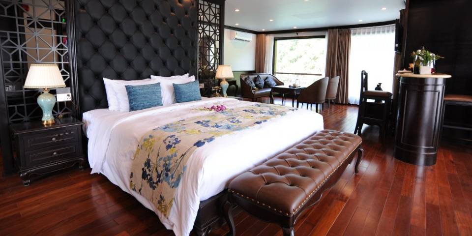 Experience the true luxury with President Legend which is furnished with exclusive facilities and privilege services. Sealife Group proudly offers the largest suite on Lan Ha Bay and Halong Bay with total area is 155m2. Your suite benefits from panorama luxurious bay view bathtub and standing shower; your own butler; all – inclusive with selected in – house beverage and free massage for two with one hour for two. Treat yourself with an extra living space of a private terrace where your own candle-light dinner or a private pool party can be held. Unwind in your own outdoor Jacuzzi overlooking the bay. Guests staying in President Legend Suite are also offered preferential transfer for embarking by speedboat and privilege check-in process. Email: sealifelegendcruise@impresstravel.com& call to Mr. Alex Impress Travel, Lan Ha Bay Tours, Lan Ha Bay Cruises & Sealife Legend Cruise Manager at his cell-phone (+84) 9123 79 189 ​