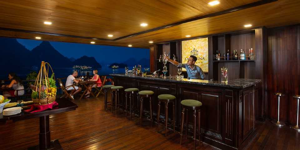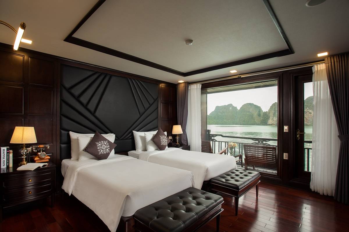 They say La Regina Legend is a glamorous cruise without compare! The ship effortlessly blends all that’s great about the liners past – wood detailing and brass fixtures, for example – with modern comfort and luxury. She features luxury down to the smallest detail, from the ornately decorated paintings of Vietnamese queens in the restaurant to the wood-paneled library, La Regina Legend’s beauty lies within her features. Honestly, the four-deck cruise deserves to be fully explored to uncover her secrets and your favorite places onboard. The cabins such as Queen Regent Suite (Area: 135m2, Location: 2nd floor, Bed type: 01 round shape king-size bed, No of cabin: 01), Queen Triple Suite( Area: 54m2, Location: 2nd & 3rd floor, Bed type: 03 single beds, No of cabin: 04) and Princess Suite (Area: 45m2, Location: 1st, 2nd & 3rd floor, Bed type: Double or Twin, No of cabin: 22).