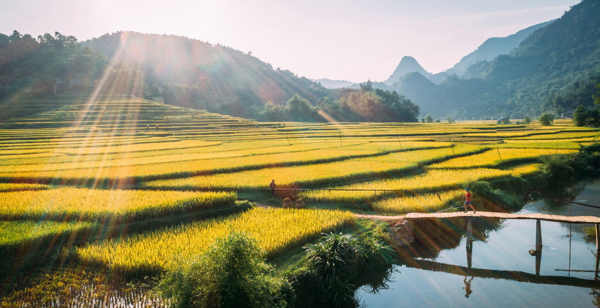 PM: After lunch, we have a short time to relax and drink green Vietnamese tea before we are getting started cycling to discover the beauty of Pom Coong Thai Ethnic Village. Our tour guide brings you to see farmers working in fields, locals weaving scarves, and visit surrounding peaceful villages.