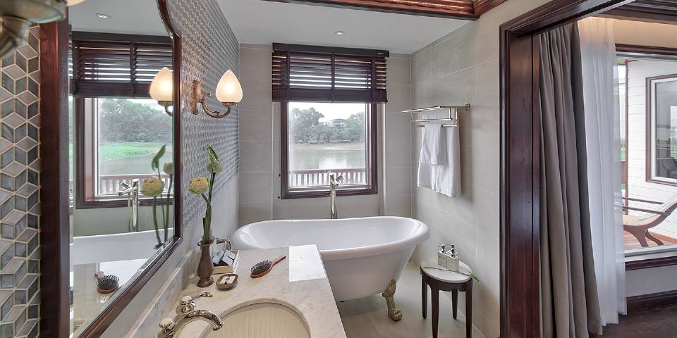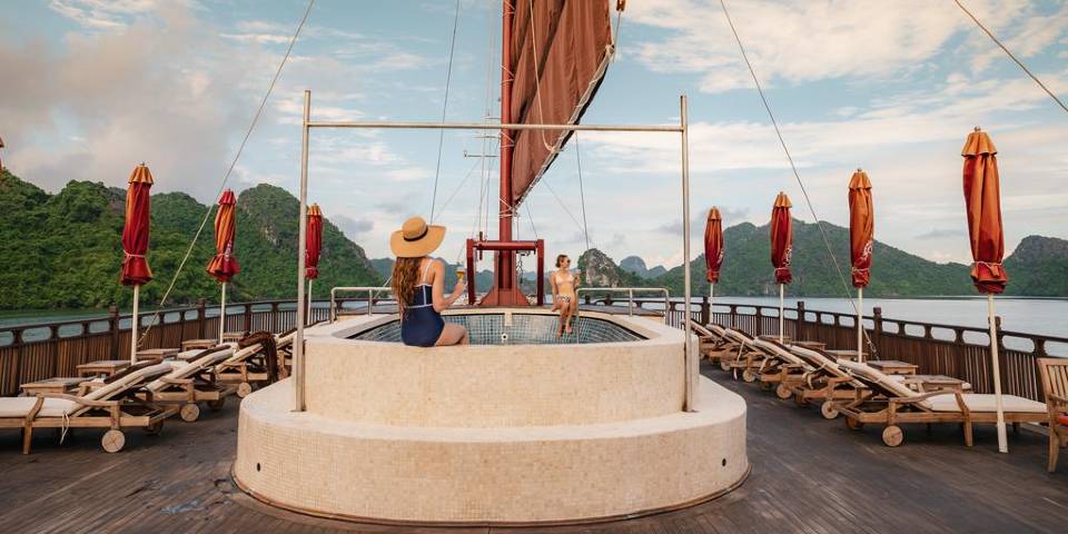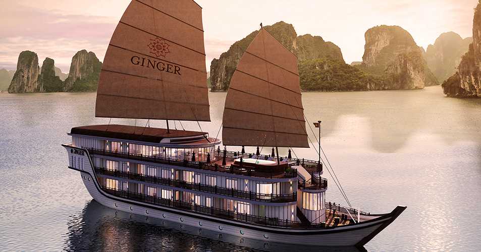 Ginger Cruise Lan Ha Bay’s cabins include: 1) JUNIOR SUITES – The six spacious Junior Suites (two twins, four doubles) with 37 sqm total floor space, 2) SIGNATURE SUITES – The Signature Suites have the same total floor space of 37 sqm (including a 5 sqm private balcony) as the Junior Suites but are located on the upper deck. 3) REGENTS SUITES – The two Regent Suites, named Blue Phoenix and White Crane, are the most luxurious options to voyage aboard Ginger. Both have 50 sqm of floor space including private balcony and a bathroom with a Jacuzzi that offers great vistas of Lan Ha Bay