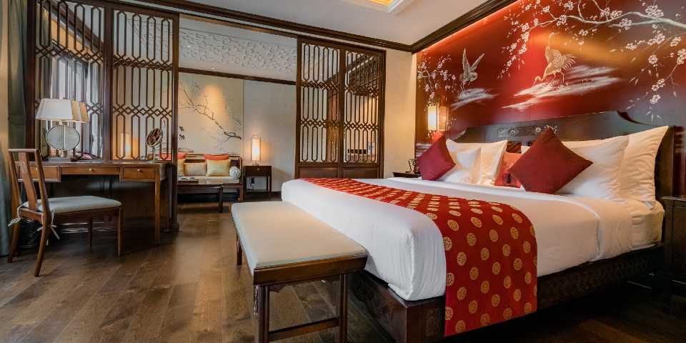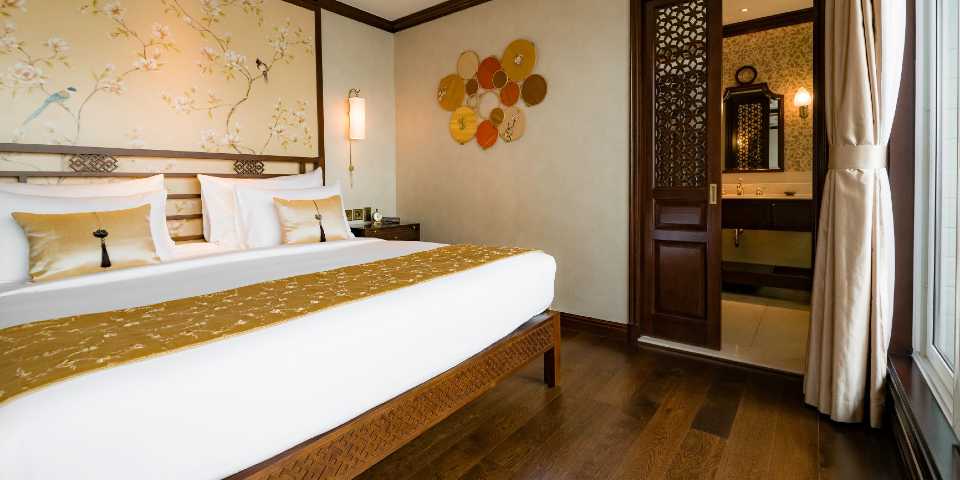 The two Regent Suites, named Blue Phoenix and White Crane, are the most luxurious options to voyage aboard Ginger. Both have 50 sqm of floor space including private balcony and a bathroom with a Jacuzzi that offers great vistas of Lan Ha Bay. The light-flooded expansive bathroom in conjunction with the private balcony (6 sqm) make the Regent Suites a special abode. Each of the two suites boasts an individual design theme dedicated to mythical birds of Vietnam’s rich repertoire of fables. The interior design features hand-made lacquer panels over the bed, antique and colonial furniture, gleaming gold leaf ceilings and artistic decoration. Email:gingercruise@impresstravel.com & call to Mr. Alex Impress Travel, Lan Ha Bay Tours, Lan Ha Bay Cruises & Ginger Cruise Manager at his cell-phone (+84) 9123 79 189 ​