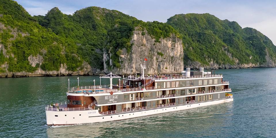 • 12:30 Board the Heritage Cruises boat and enjoy a welcome drink as you receive a cruise briefing, safety instructions and check in to your suite. Lunch is served at L’Indochine Restaurant.