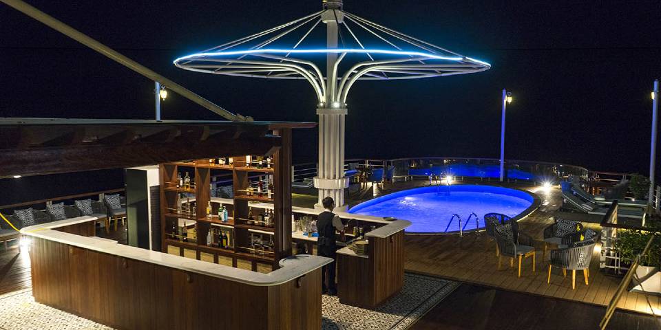 • 21:30 Enjoy evening views of the bay at the bar on the top deck. Try your hand squid fishing. The bars are open until late.